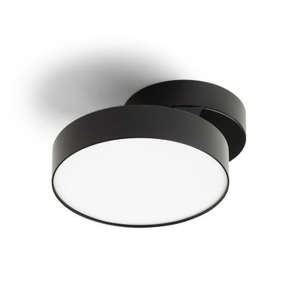 Plafoniera cilindrică directionala, cu soclu GU10 pentru surse de lumina LED, inclusiv o nuanță decorativă din alama neagră periata. Sunt disponibile diferite combinatii de culori prin achizitionarea de nuante suplimentare.