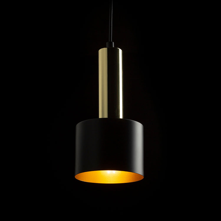 Lampă suspendată cilindrică minimalistă pentru surse de lumină GU10 pe o bază rotundă. Arcurile atașate la priză permit utilizarea surselor de lumină de diferite lungimi.
