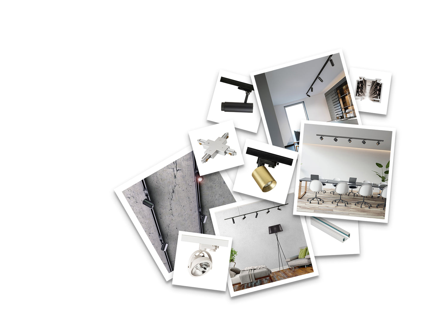 Sistem de șine universal, perfect pentru toate utilizările. Ideal pentru spații rezidențiale și comerciale mici.