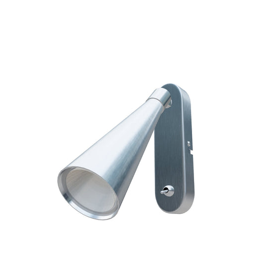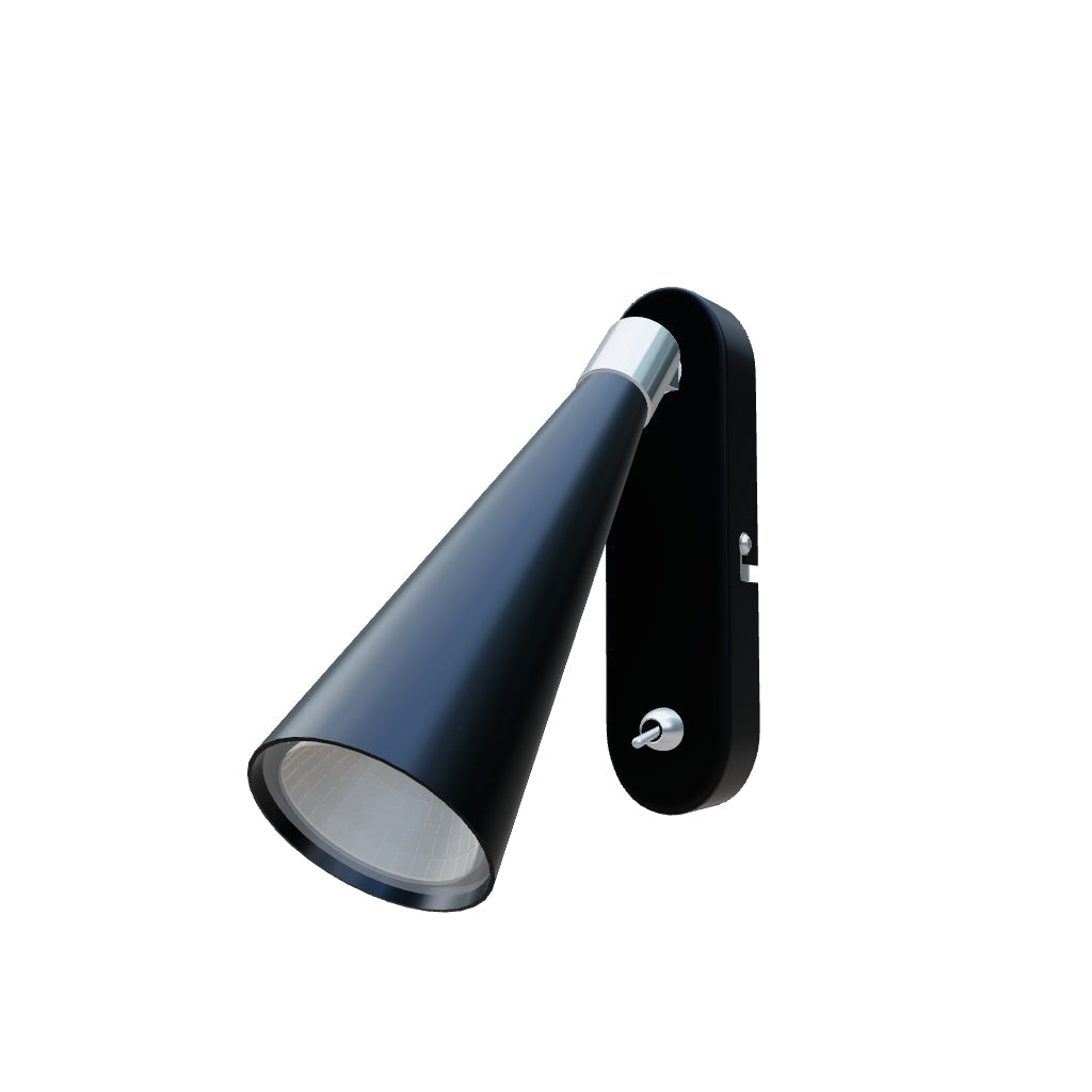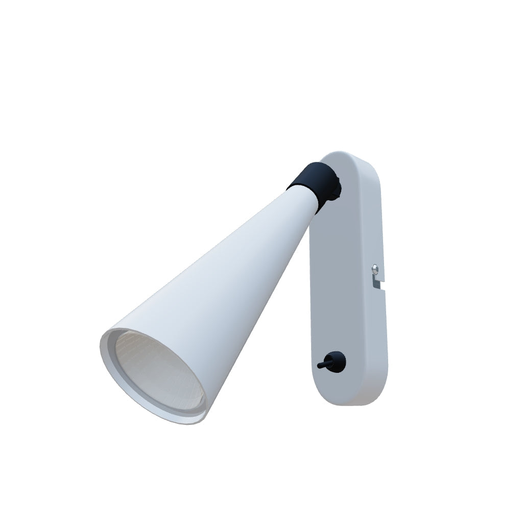 Lampa de perete cu reflector conic pentru un bec LED cu baza GU10, cu un comutator pe baza corpuilui.
