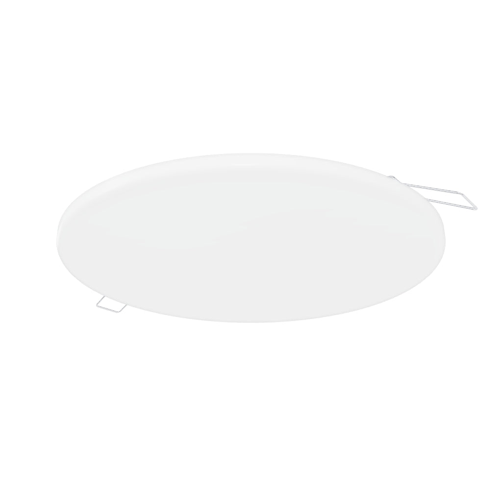 Lumina încastrată fără ramă. Difuzor acrilic mat, ușor convex. Potrivit pentru zonele umede.