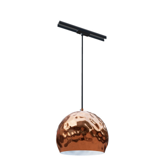 Pandantiv cu abajur din metal crestat. Exteriorul abajurului este de culoarea aramiului, iar interiorul este lăcuit alb. Livrat cu un cablu PVC negru cu adaptor pentru sine cu 1-circuit.