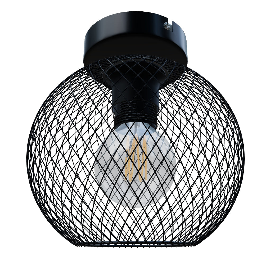 Plafoniera in forma de sfera din metal perforat fin, potrivita pentru surse de lumina LED decorative cu baza E27. Diametrul maxim al sursei de lumină este de 8 cm.