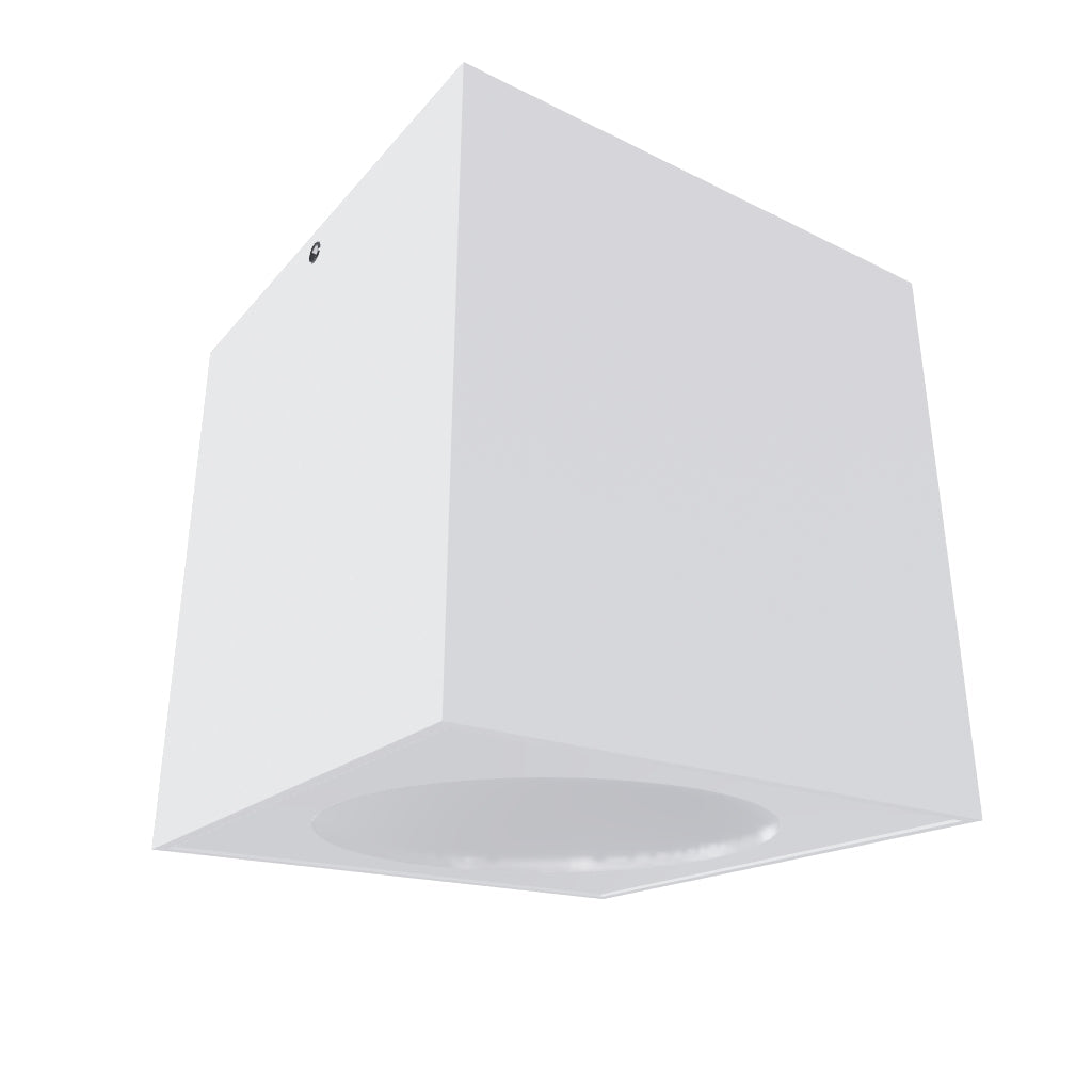 Plafoniera de exterior cu LED incorporat. Produsul are un capac cu fundul din sticlă transparentă, cu o garnitură care se potrivește cu restul luminii.