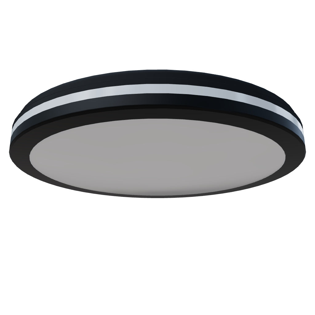 Lampa LED montata pe suprafata din plastic cu temperatura de culoare reglabila, conceputa pentru utilizare in exterior.