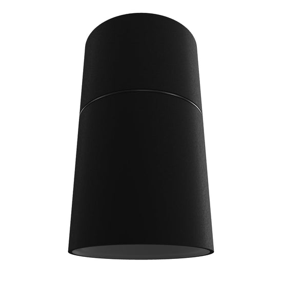 Plafoniera cilindrică exterioară din fibră de carbon cu o priză GU10 pentru surse de lumină LED. Fibra de carbon are o toleranță îmbunătățită la climatul de apă sărată.