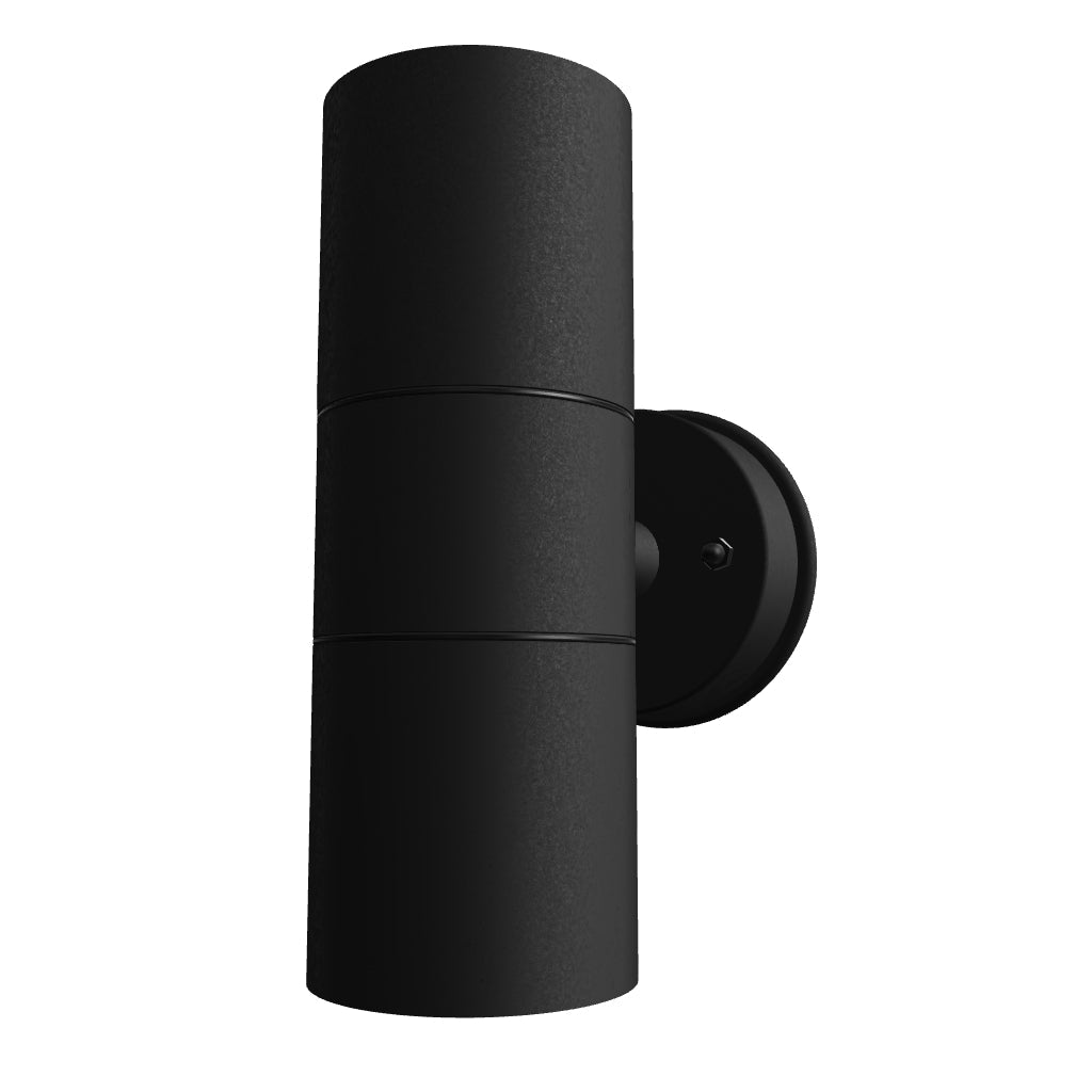 Aplica de exterior cilindrica din fibra de carbon cu o priza GU10 pentru surse de lumina LED. Fibra de carbon are o toleranță îmbunătățită la climatul de apă sărată.