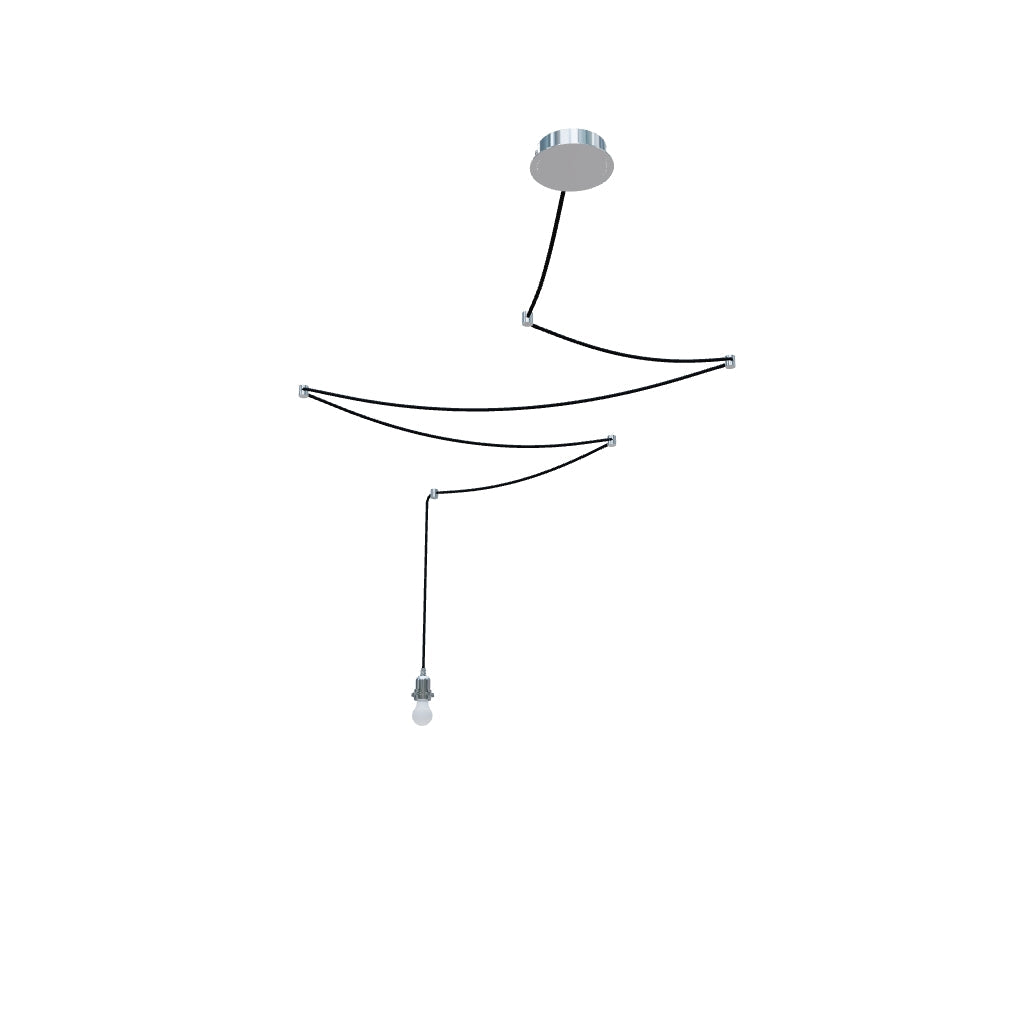 Set variabil potrivit pentru folosire cu un bec decorativ sau pentru suspendare la abajururi ușoare. Setul se poate prinde pe tavan ori pe perete cu mânere pe cablu textil negru. Setul are 4 piese de mânere din plastic ori 4 din metal cromat. Mânerele pot fi comandate și separat. Accesorii adecvate: ARISTA, ASPRO, DOUBLE, JAKARANDA, RON.