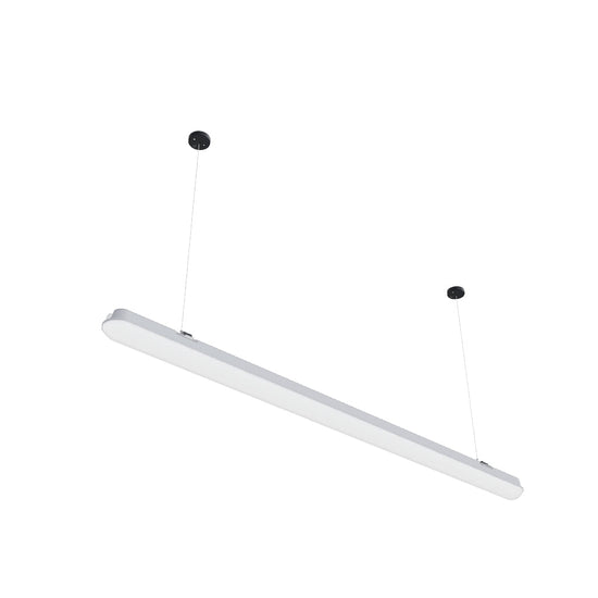 Lumină LED din fabrică, liniară, pentru montare pe plafon sau suspendată, cu kit de suspensie G13672. Putere mare de lumină și protecție IP65. Livrat fără kitul de suspensie și cablul de alimentare. Mai multe lumini pot fi legate într-o serie.